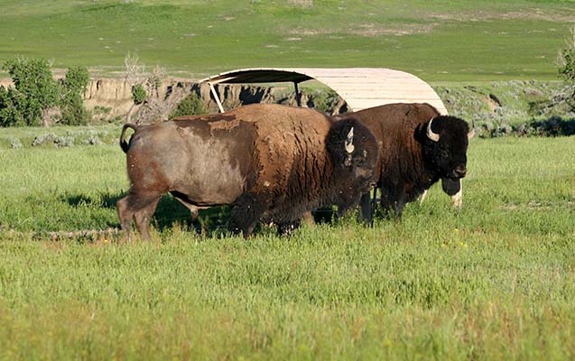 If you leave them alone, they don't pose a danger. We watched all this happening while we were sitting under our shelter having dinner. The bison didn't even attempt to come close to where we were. They walked close by our tent, though.