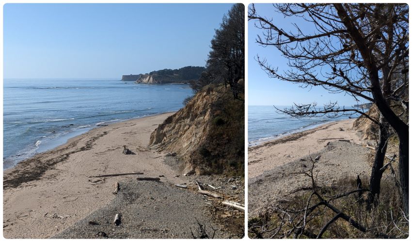 Since the tide was coming in, it was time to go. Halfway up the bluff, there was onle last view back to this hidden gem of a beach.